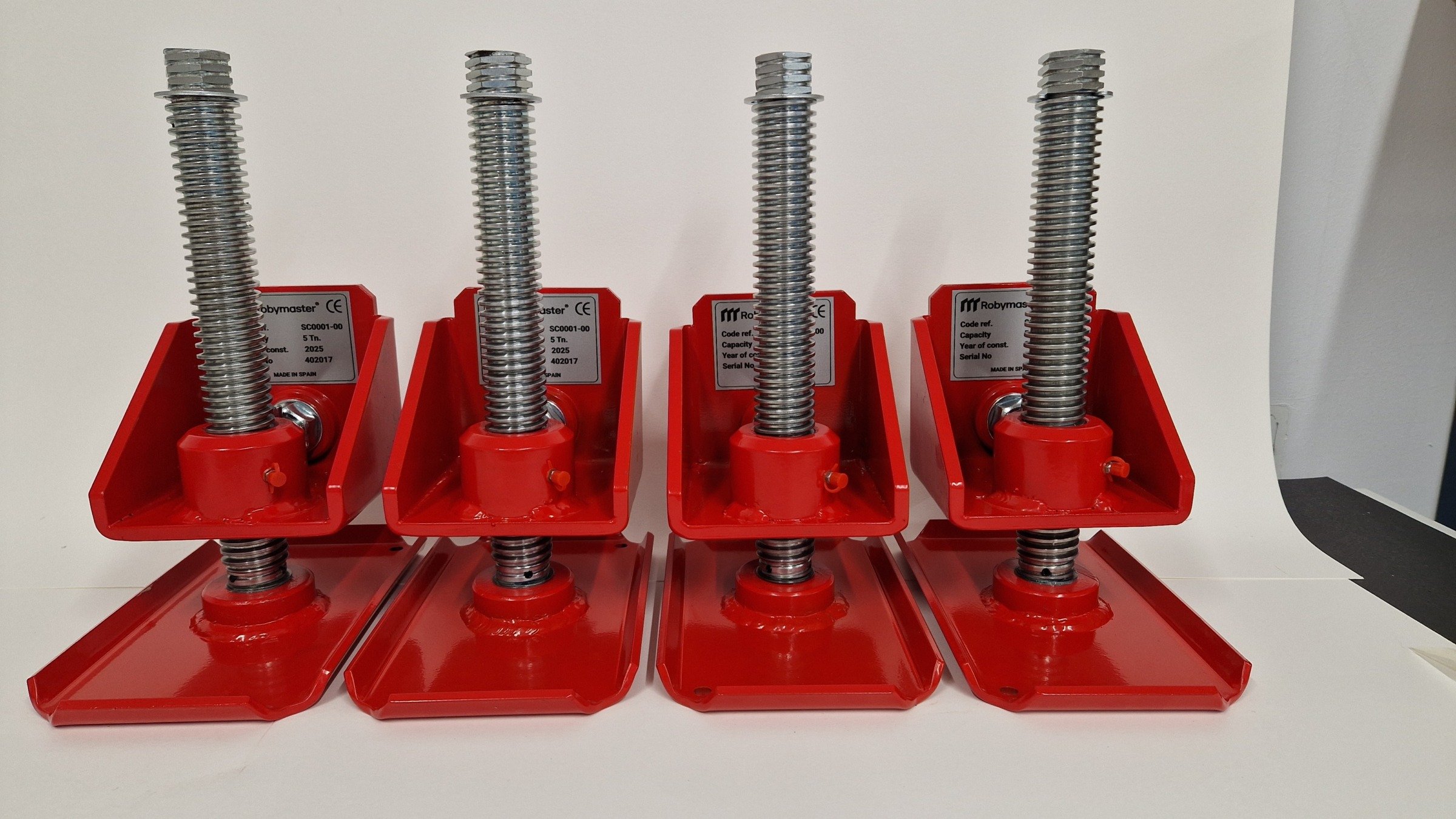 Robymaster levelling legs are designed for accurate container levelling when the ground is uneven, soft, or sloped.